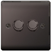 BG Electrical Accessories Nexus Metal Dimmer Switch NBN82P 2 Gang 2 Way 400w Dimmer Light Switch Push On / Push Off - Rotary To Adjust Level 60W-400W Halogen 5W-50W LED Leading Edge Black Nickel With No Visible Inserts Dimensions - 86 x 86 x 41.2mm Integral Gasket for Moisture Protection Colour Coded Screws Minimum Mounting Box Depth - 25mm BS EN 60669-2-1