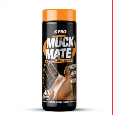 XPRO Muck Mate Trade Wipes- Scrub & Clean 2-in-1 Trade Wipes. XPRO Muck Mate Trade Wipes, the no-nonsense wipe made for busy trades who need results fast. Each wipe combines a scrub side for shifting stubborn grime with a smooth clean side for the final finish, so you can tackle mess and leave surfaces looking spot-on with one wipe. Designed for everyday site use, Muck Mate helps remove and lift many common trade marks and residues including sealants, adhesives, expanding foam overspray, paint, primer, filler, grease, oil, dust and general construction grimeideal when you need clean hands and tools without hunting for multiple cleaners. Why youll rate XPRO Muck Mate 2-in-1 wipe: scrub side + clean side for faster clean-ups Trade-tough cleaning power: cuts through sticky, oily and messy residues Multi-use: great for hands, tools, worktops, ladders, vans and site surfaces Convenient on site: grab-and-go wipes for quick clean ups between jobs Professional finish: scrub it loose, then wipe clea